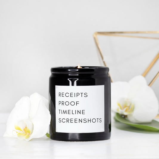 Receipts! Proof! Timeline! Screenshots! Candle (Black)