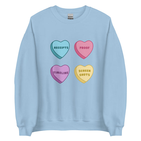 Receipts Proof Timeline Screenshots (Hearts) Unisex Sweatshirt
