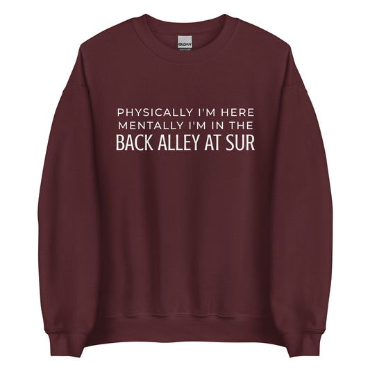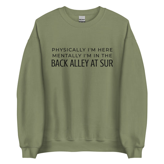 Physically I'm Here Mentally I'm In The Back Alley At Sur Unisex Sweatshirt (Black Font)