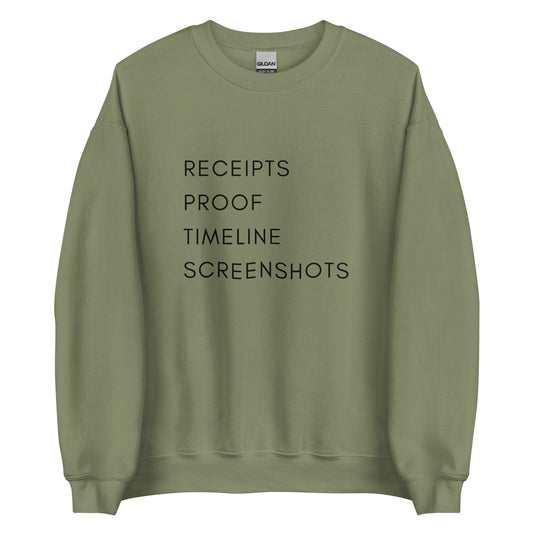 Receipts Proof Timeline Screenshots Unisex Sweatshirt (Black Font)